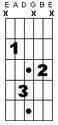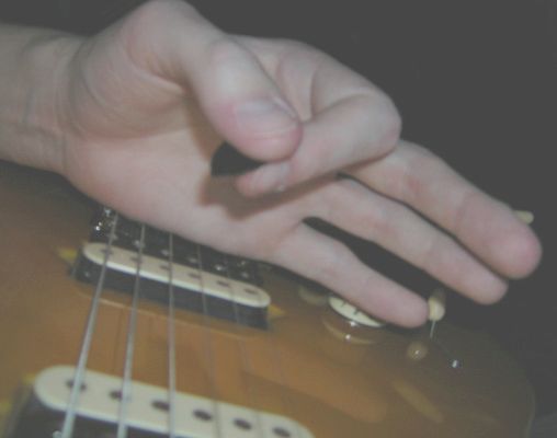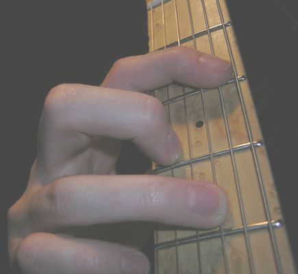 playing a simple B minor chord. Notice how the tip of my index finger just